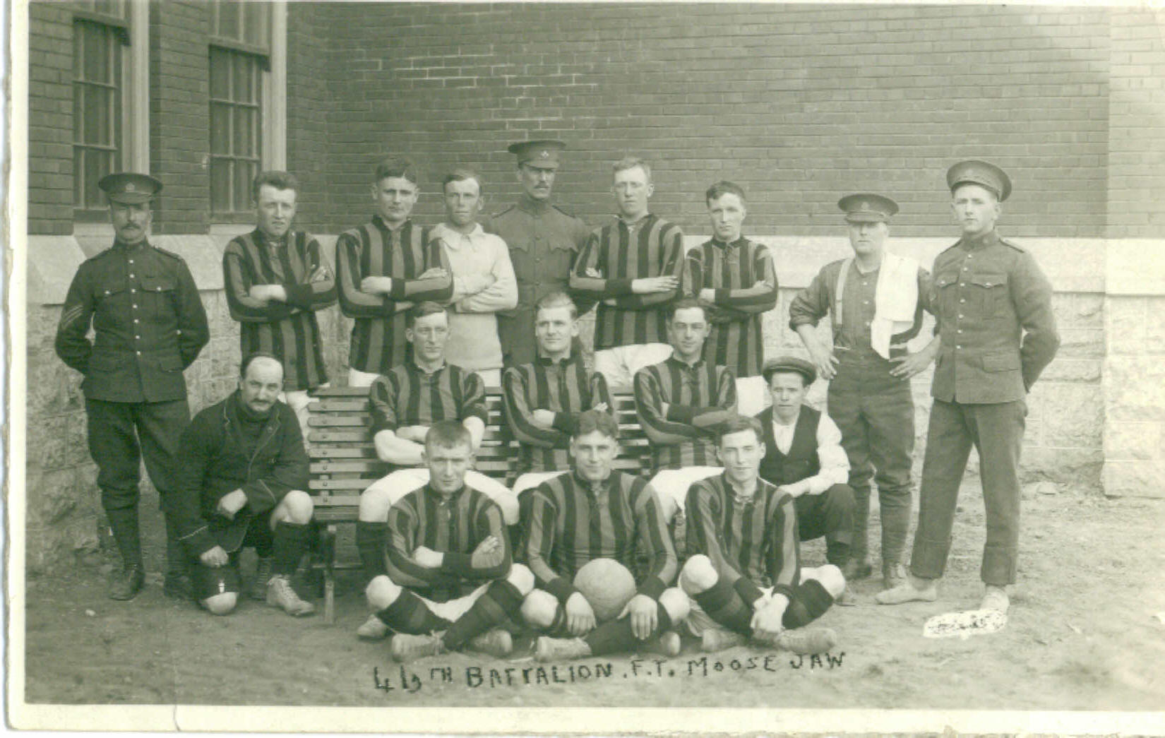 46th Battalion Soccor Team - S. T . Hampson top row, 3rd from left
