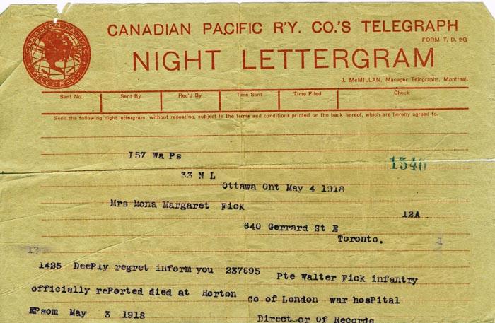 Telegram of his death, May 4, 1918