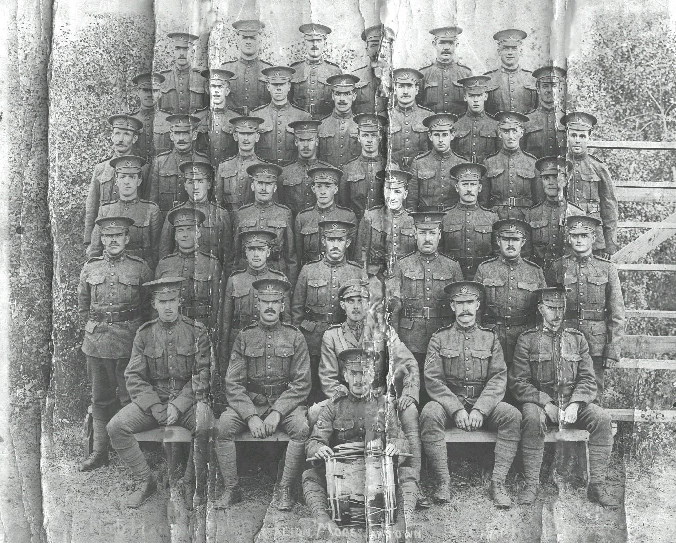 No5 Platoon, 128th Battalion. George Ridgeway seated 5th row from the front, second from the...