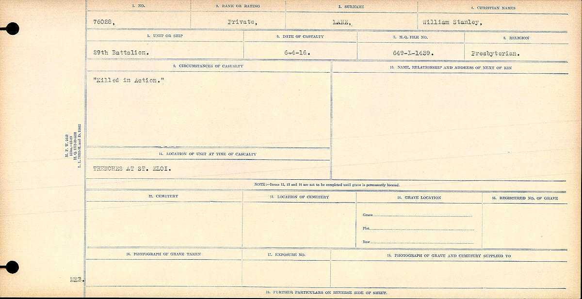 Lane, William Stanley - Other
