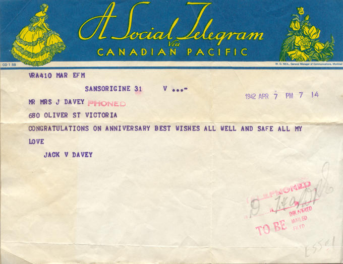 Davey, John Vernon - Telegrams
