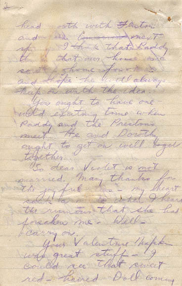 So dear Violet is not married. Many thanks for the joyful news- my heart sank a mile when I heard the rumour that she had forsaken me. Well. Carry on.