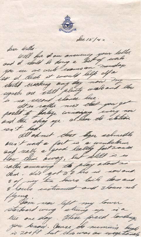 Damn near left my lower starboard wing strung up in a tree one day. These forced landings you know Course the height is 200 ft but this was an exception, tall tree. My instructor and al were playing knots and crosses the other day. It is really fun [?] after a fresh snow You make wheel marks align them and you can really have a good game. All the deer have been scared to hell out of the solo lying areas so now Manitoba is [?] with a milk & cream shortage around here anyway. Gawd some of those cows can run. They've been washing the bays out right and left. I am expecting a trip to France for the winter anytime now. They have been giving the boys shit for low flying lately.