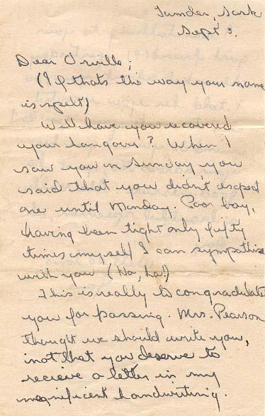 This is really to congratulate you for passing. Mrs. Pearson thought we should write you, not that you deserve to receive a letter in my magnificent handwriting.