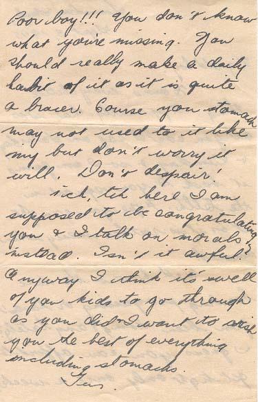Anyway I think its swell of you kids to go through as you did & I want to wish you the best of everything including stomachs.