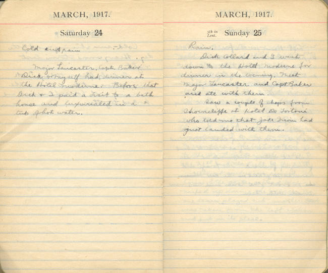 Saw a couple of boys from Shorncliffe at Hotel De Fontana who told me that Jake Irwin had just landed with them.