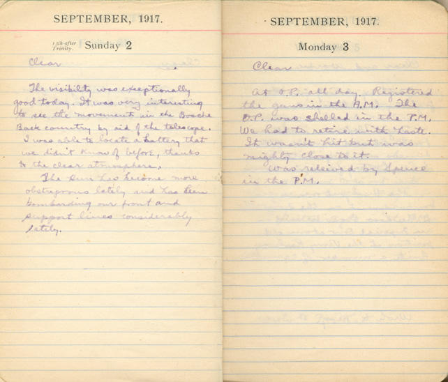 At the O.P. all day. Registered the guns in the A.M. The O.P. was shelled in the P.M. We had to retire with haste. It wasn't hit but was mighty close to it.