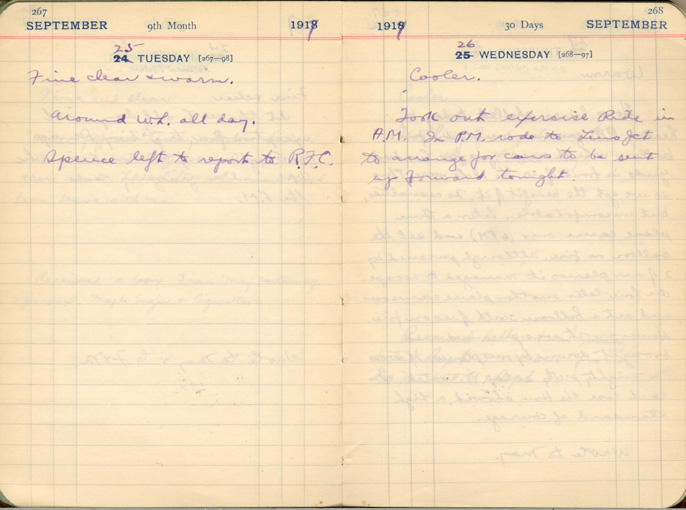 Took out exercise Ride in the A.M. In the P.M. rode to Lens Jct. to arrange for cars to be sent up forward tonight.