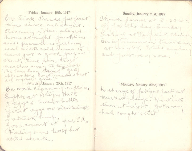 On Sick Parade for first time since enlistment. Cleaning rifles, stayed home at night first time since quarantine feeling real sick cold seems to have hot a good grip on chest. Fine am. Draft marches away to tune of The long long rail god bless the boys Canadas best all my pals gone!!
