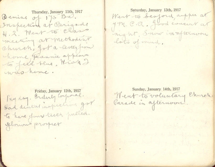 Reveille at 5:30 a.m. Drill commences at 7-30 am Entrenching work today cinched hut orderly job. Walked round that most dismal of all places Seaford.