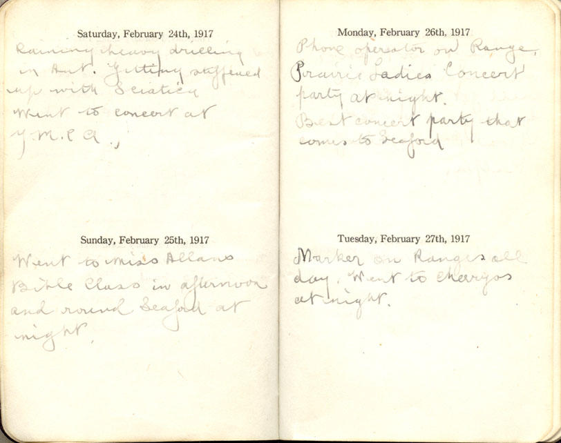 Drilling hard all day. P.S.M. a miserable little Jew. Being treated like dogs, Canada for mine if I ever get back. Concert party from Brighton at Y.M.C.A. at night.