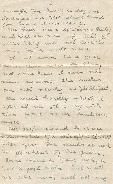 Our crops around here are some what of a disappointment this year. The weeds seemed to get ahead of the grain. Some have a fair crop, a few a good crop, but most are like ours, just not very good.