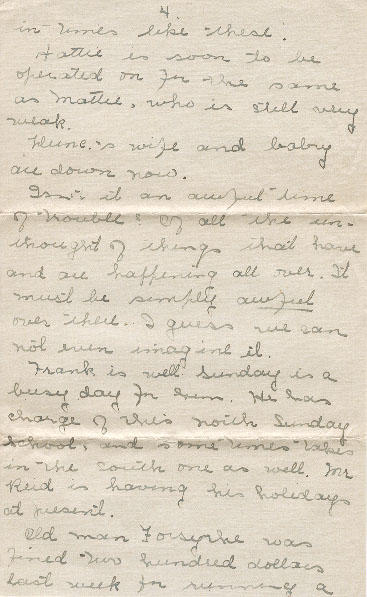 Old man Forsyche was fined two hundred dollars last week for running a "Blind Pig" Isn't it awful, at his time of life, and in these awful times.