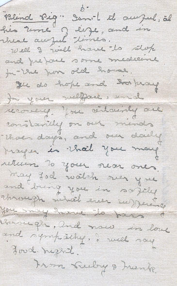 May God watch over you and bring you in safely through whatever happening you may have to pass through, and now in love and sympathy I will say good night.