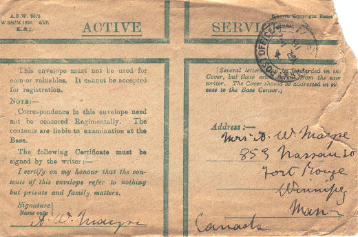 I do not know particulars yet, but understand that it will be leave for 3 months.& without doubt when I come back, I shall be able to get my discharge or at least stay permanently in Canada. However you & the kiddies will be overjoyed at the near prospect (DV) of seeing me.