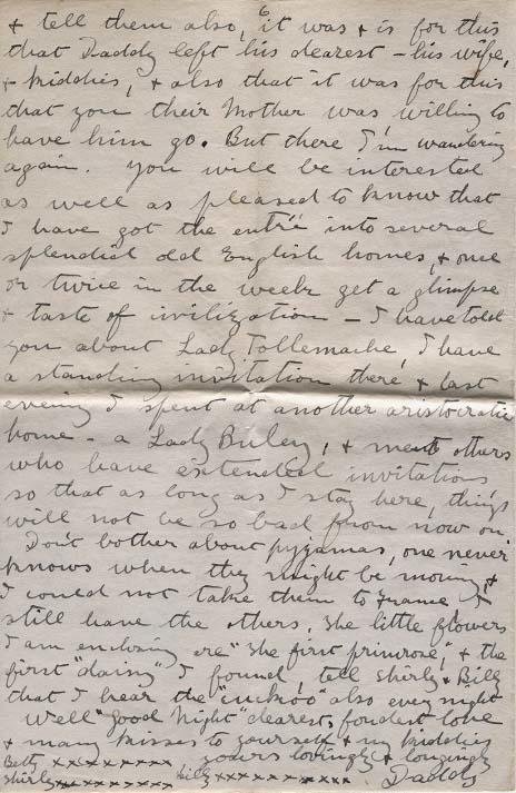 Well "good night" dearest, fondest love & many kisses to yourself & my kiddies