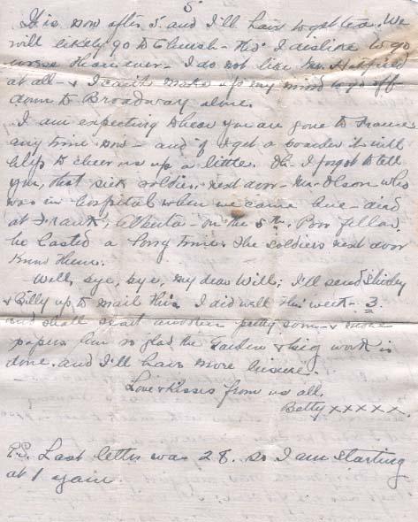 It is now after 5 and I'll have to get tea. We will likely go to church - this I dislike to go worse than ever - I do not like Mr. Hatfried at all - & I can't make up my mind to go off down to Broadway alone.