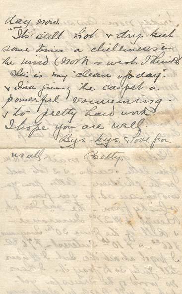 Friday noon - Am sending this with Shirley to school to mail. Billy slept right through last night - but started coughing in the morn. I kept him in bed till noon, with linseed & mustard on. But dressed him, & he's off out now. I put on his woollen undershirt & knitted suit. It is just one of those "throat coughs" - no tears - & quite lively.