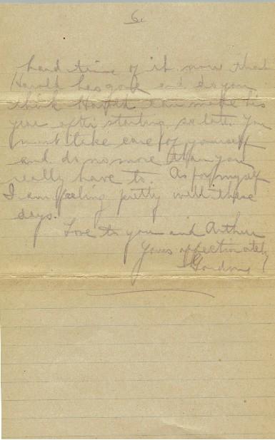 You will have an awful hard time of it, now that Harold has gone and do you think Harold can make his year after starting so late. You must take care of yourself and do no more than you really have to. As for myself, I am feeling pretty well these days.