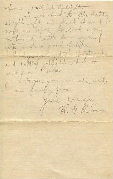 I hope you get the post cards and letters alright that I sent from Paris. Hope you are all well. I am feeling fine.