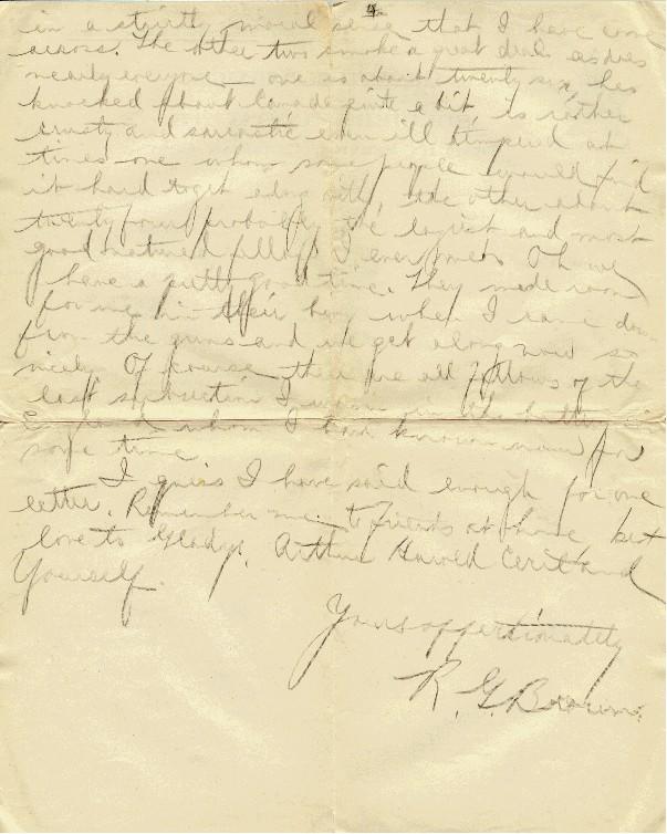 I guess I have said enough for one letter. Remember me to friends at home. Best love to Gladys, Arthur, Harold, Cecil and yourself.