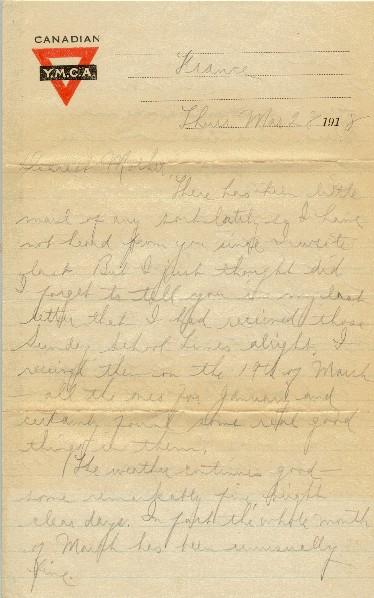 There has been little mail of any sort lately so I have not heard from you since I wrote last. But, I just thought, did I forget to tell you in my last letter that I had received those Sunday School Times alright? I received them on the 19th of March - all the ones for January, and certainly found some real good things in them.