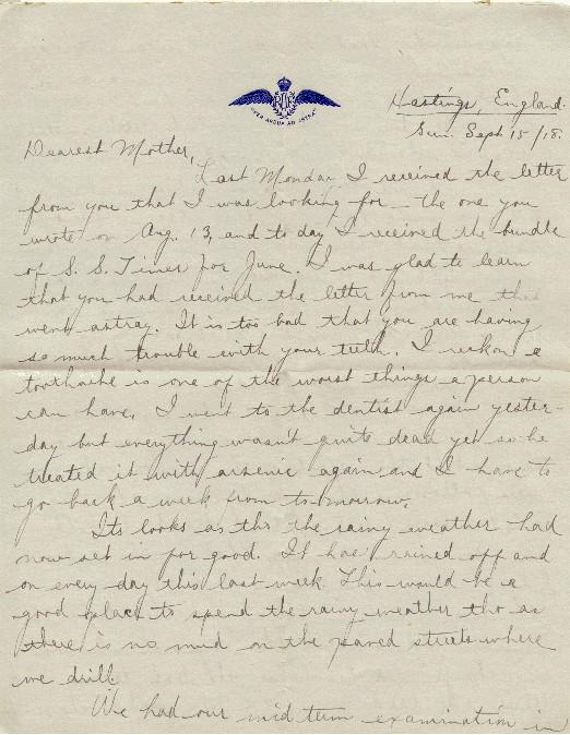 Last Monday, I received the letter from you that I was looking for - the one you wrote on Aug. 13, and today I received the bundle of S.S. Times for June. I was glad to learn that you had received the letter from me that went astray. It is too bad that you are having so much trouble with your teeth. I reckon a toothache is one of the worst things a person can have. I went to the dentist again yesterday but everything wasn't quite dead yet so he treated it with arsenic again and I have to go back a week from tomorrow.