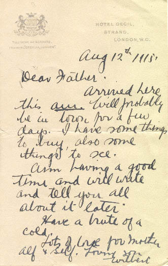 Arrived here this A.M. Will probably be in town for a few days. I have some things to buy, also some things to see. Am having a good time and will write about it later.