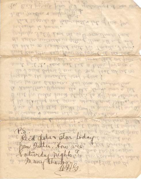 P.S. Rec'd globe & star today from Father. How are Saturday nights? Many thanks. W.H.G.