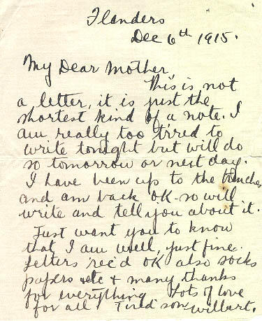 This is not a letter, it is just the shortest kind of note. I am really too tired to write tonight but will do so tomorrow or the next day. I have been up to the trenches, and am back O.K. so will write and tell you about it.