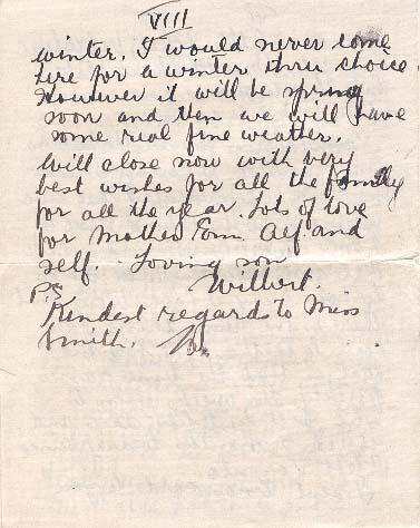 So far I have escaped the cold which almost everybody has. However I expect my turn will come. It is almost impossible to live in this miserable place without "getting it in the neck". It is really the dampest and most miserable place to put in a winter. I would never come here for a winter thru choice. However it will be spring soon, and then we will have some real fine weather.