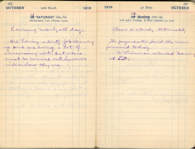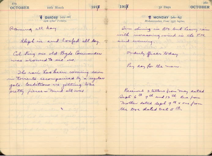 Received 3 letters from May dated Sept 6th 9th and 12th. One from Mother dated Sept 9th and one from the Doc dated Oct 5th