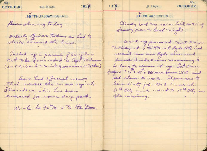 Have had official news that we are the move up into Flanders. This has been rumored for some days past.