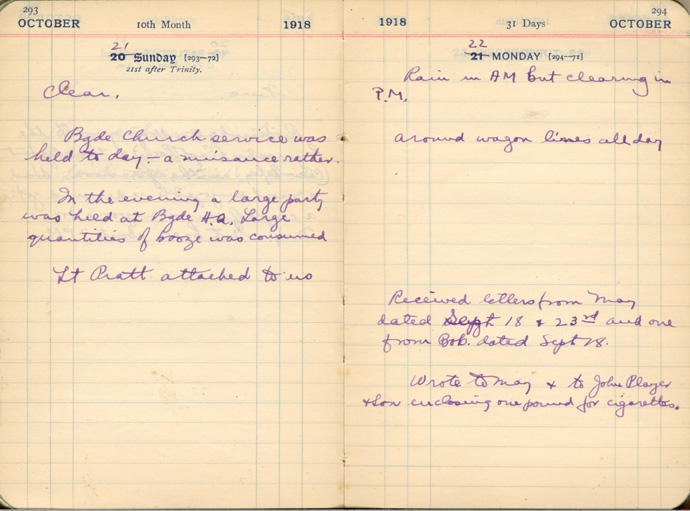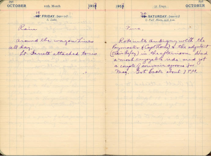 Rode into Ambigny with the Paymaster (Capt. Roche) and the adjutant (Clair Ryley) in the afternoon. Had a most enjoyable ride and got a couple of souvenir spoons for May. Got back about 7 P.M.
