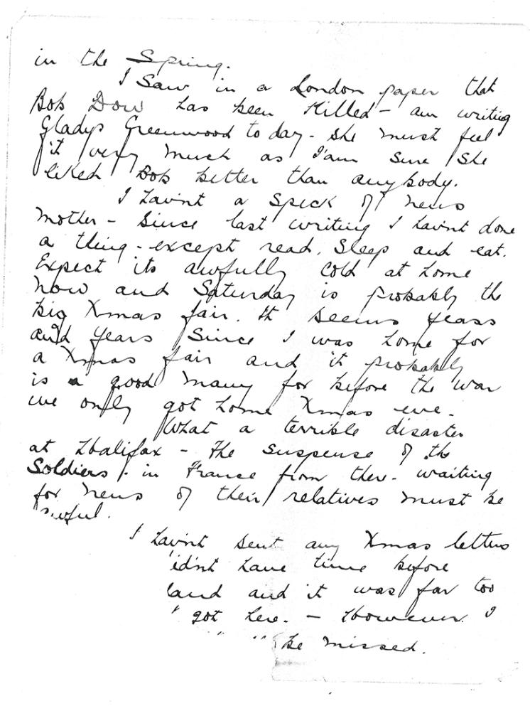 What a terrible disaster at Halifax. The suspense of the soldiers in France from there - waiting for news of their relatives must be awful.