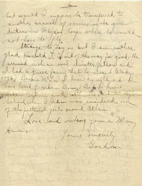 Strange to say so, but I am rather glad Harold T. is out of the way for good. He seemed such an evil, sinister fellow and I had a queer fancy that he meant Gladys ill. Bessie McL. - I knew by sight and I have heard of Helen D. But, I knew Helen Brown quite well. She went to High School when I did - was considered one of the prettiest girls around Athens.