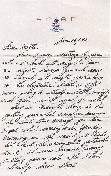 Here I am writing to you at 1 o'clock at night. I am on night hanger guard now so I work at night and sleep in the daytime. What a life! I am going to study a little while tonight and then I will read for a while.
