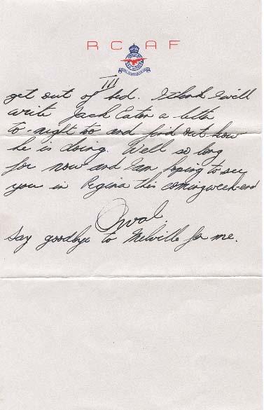 We didn't have a bad trip back, we only ran into 3 miles of real bad road but we finally made it about 3:30 in the morning. I sure slept that night let me tell you. I didn't think I could get out of bed. I think I will write Jack Eaton a letter to-night too and find out how he is doing. Well so long for now and I am hoping to see you in Regina this coming week-end.