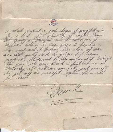 They are going to build a swimming pool here as a matter of fact they have started to build it already. Bird construction is building it and it supposed to be worth about $3000 so it should be all right but then I won't be here to enjoy it. I think I stand a good chance of going to Regina for A.O.S if it stays there for a while. I saw Bob Cowsely in MooseJaw and he asked me for Melville's address so I am going to drop him a line and send it to him. Those shoes of mine are still pretty hard to get on but I am gradually getting around to the system of it. I thought that you were going to send a fruit cake around Wednesday, that other one was really good even if I did get only one piece of it. I guess that is all for now.