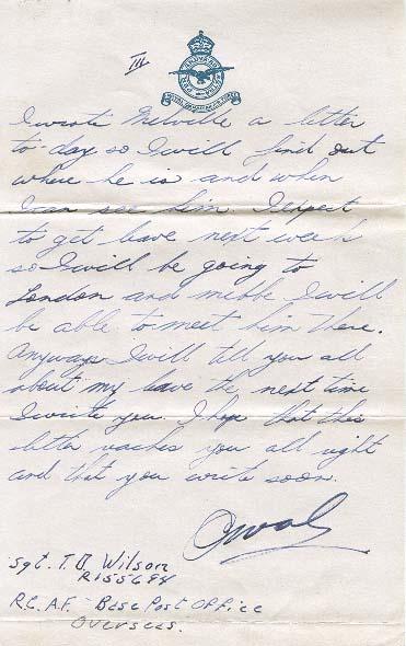 I wrote Melville a letter to-day so I will find out where he is and when I can see him. I expect to get leave next week so I will be going to London and mebbe I will be able to meet him there. Anyways I will tell you all about my leave the next time I write you. I hope that this letter reaches you all right and that you write soon.